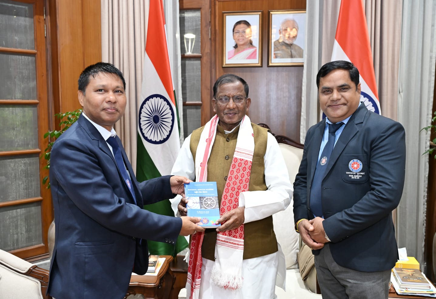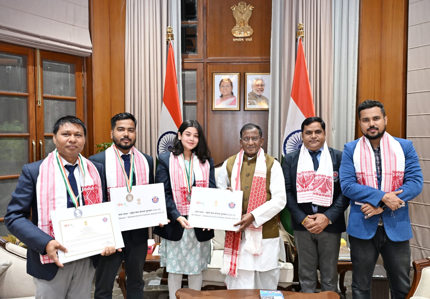 Dr. Bhuban Ch.Chutia My Bharat National NSS Awardee-2022-2023 (Programme Officer Category) with the two other awardees (volunteer category) of "My Bharat National Service Scheme Awardee had visited Hon'ble Governor of Assam at Lok Bhavan today for a special felicitation programme by Hon'ble Governor of Assam.